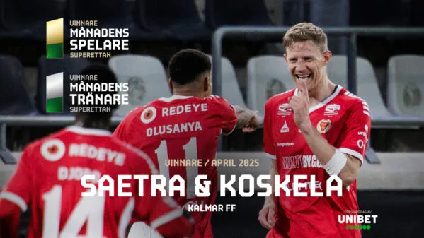 Både priset som Månadens Spelare och Månadens Tränare hamnar hos Kalmar FF. Grattis till Lars Saetra och Toni Koskela.…
